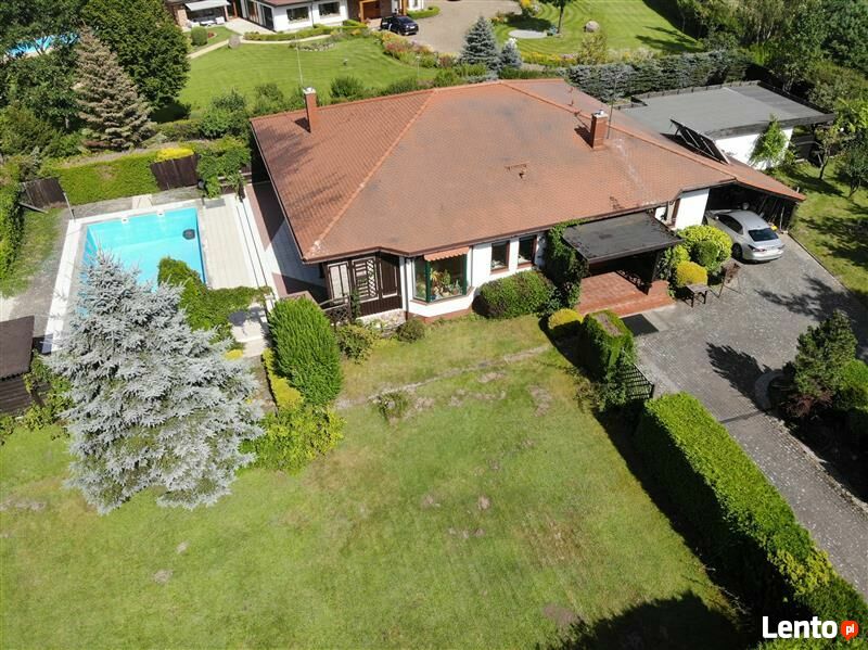 Nieruchomość znajduje się na przestronnej działce o powierzchni 5444 m², zagospodarowanej zielenią, drzewami oraz stawem. Na terenie posesji znajduje się także przydomowy basen – idealne miejsce do relaksu w ciepłe dni. Doskonała Lokalizacja